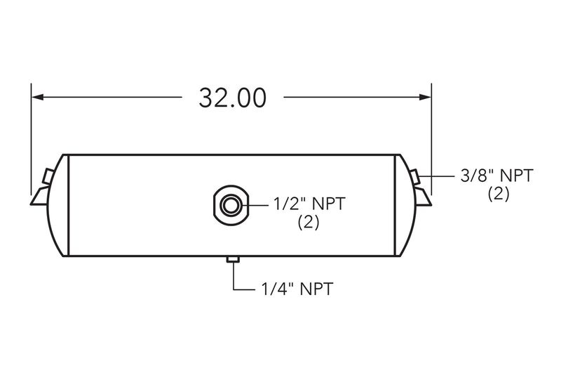 Air Tank, 8″ Diameter, 1/2″ (2) Main Port, 3/8″ End Port